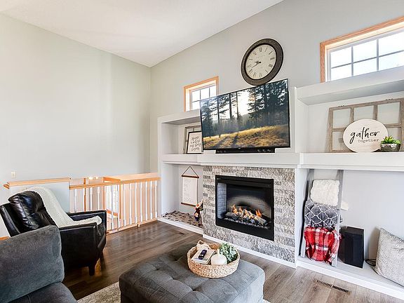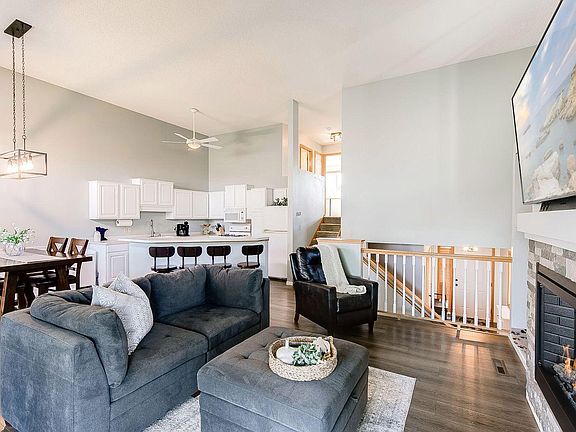 Spectacular end-unit townhouse with 3 bedrooms, 3 bath! Bright and open main-level includes living-room, dining, 4 season porch and kitchen with large center island and bar seating. Two fireplaces, one in the main-level living room and gas burning in lower level family room. Both the dining room and 4-season porch have patio doors leading to a maintenance free 12x10 deck overlooking gorgeous green space. Stylish engineer laminated hardwood throughout main level. Recent updates include Air Conditioner, clothes dryer, water heater, light fixtures/ceiling fans throughout. Association recently replaced: Driveways, sidewalks, landscaping and garage doors (insulated). Great Lakeville area with easy walk to local favorites in downtown Lakeville. Restaurants, coffee shop, summer farmers markets, Pan-O-Prog festivities. Minutes to 35W and Cedar Ave.