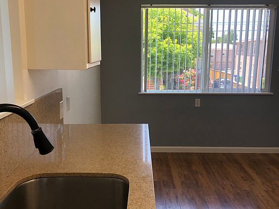 Freshly painted sunny upstairs unit! Wood floors, new lino in the bathroom, new carpet in the bedrooms. 6 unit building with off street parking. On site laundry. Handsome unit, largest in the complex. Applications only available at showings. Good credit required, 680 or equivalent and above. 1 year lease. No pets, no smoking, sorry, owner firm. Owner pays for water, trash. Tenant pays for any utilities or telecoms.