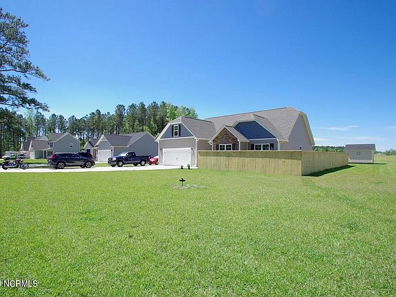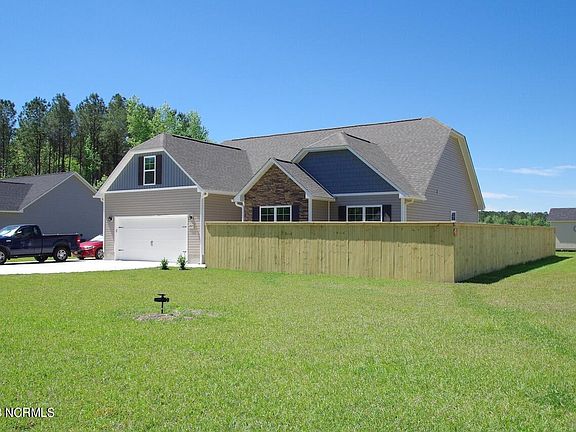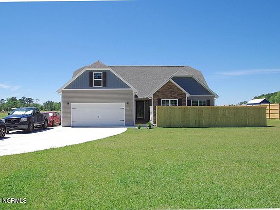 This beautiful home is like new with builder warranty remaining until August 8th, 2023. Welcome to one of Maysville's newest communities, Hewett Farm! This new home community is conveniently located just a short drive to Camp Lejeune & and local beaches with NO city taxes! This home has added curb appeal with a mixture of eye-catching stonework, carriage-style garage doors, two-toned vinyl siding, board and batten, and decorative shake siding! The open floor plan is perfect for entertaining, and the wall colors add warmth and dimension to the space. The large rooms and walk-in closets are also sure to please! The Celene with a Bonus Room Floor Plan offers 1,796 heated sq ft and features 3 nice sized bedrooms as well as a bonus room that's perfect for an office space, flex space or playroom. The master bedroom features a trey ceiling & walk-in closet. Entering the master bathroom will make you feel relaxed after a long day! Offering double vanity sinks, a walk-in shower & separate soaker tub, it's exactly what you want in an en suite! The Kitchen is open with modern style staggered cabinets, plenty of prep space. The island has an elevated bar and there's a window over the Kitchen Sink! The Sellers upgraded to granite countertops, added a parking pad to the driveway, storage building, and a privacy fence as well. This home is located on 3.11 acres of land and is conveniently located so you can enjoy country living at its finest, yet be only a few minutes drive to all the amenities that the city has to offer. Call and make an appointment to see this beautiful home today!
