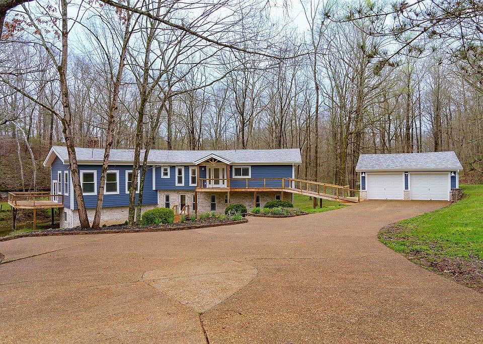 COMPLETELY RENOVATED in a beautiful & peaceful setting! On a cul-de-sac! New everything & too long to list, you've got to see it in person to appreciate it. Fantastic 2 acres with a bridge across the stream to more secluded land, perfect for family fun, fire pit, garden or pets & animals. Multiple living spaces & potential for two offices, 5th or even 6th bedroom. Downstairs has a private entry & kitchenette perfect for a teen suite, in-laws or potential AirBnB. Huge primary bedroom suite with walk-in closet. Basement area perfect for workout room, music studio, toy room, workshop or whatever you can dream up. Multiple decks for relaxing, grilling or entertaining, two car garage with 3rd "pull-through" door at the rear, garden beds & rock walls...the list goes on & on. Convenient location close to parks, shopping, dinning & short drive to Nashville, Goodlettsville, White House & Springfield. High speed gig fiber internet in place.