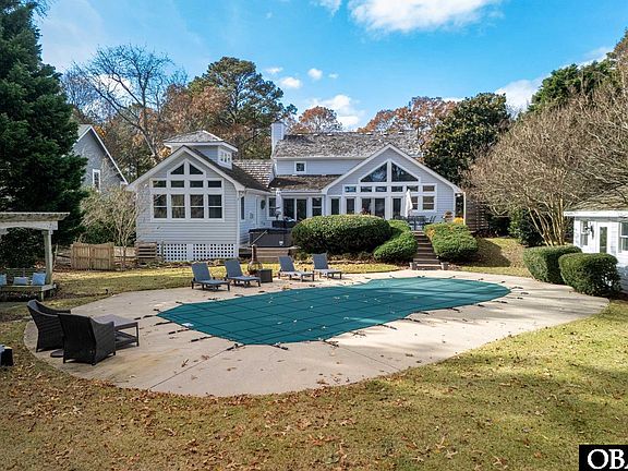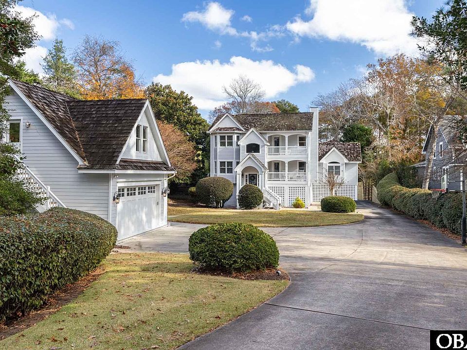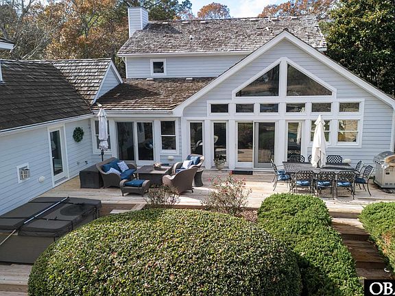 A rare combination of deep-water access, privacy, and refined coastal living, 2017 Creek Road offers an exceptional waterfront retreat in the prestigious gated community of Martin’s Point. Set on 1.24 elevated acres in an X-flood zone, the property unfolds across 4,140 sq ft of thoughtfully updated living space in the main home, plus an additional 552 sq ft of beautifully finished guest quarters above the detached three-car garage. With over 1,200 sq ft of garage space between both buildings, storage for vehicles, boats, or hobbies is abundant. Inside, the home blends timeless coastal character with modern upgrades, including a renovated kitchen, renovated primary bath, new luxury vinyl flooring, fresh exterior paint, new decking, and a new tankless water heater. The layout is designed for both comfort and privacy, with five bedrooms and 4.5 baths in the main house, including three en-suites. The primary suite is a standout—a spacious retreat with serene water views, high ceilings, a newly renovated bathroom and a generous walk-in closet space. Additional en-suite bedrooms create perfectly appointed accommodations for family or guests. Natural light fills the main living areas, complemented by three gas fireplaces and a seamless flow to the outdoor spaces. The waterfront setting becomes an extension of the home: a private dock with boat lift and gazebo provides deep-water access to Ginguite Creek and the Currituck Sound, offering exceptional boating, fishing, and sunset cruising. The expansive yard, new hot tub, and inviting pool create a true outdoor oasis designed for relaxation and entertaining. The detached garage adds tremendous flexibility. Living space above the garage includes a family room, full bath, and lofted sleeping area—ideal for extended family, overflow guests, or a quiet studio retreat. All of this is set within Martin’s Point, a premier soundfront community known for privacy, security, and amenities including a private boat ramp, boat storage yard, playground, community spaces, and proximity to the best beaches, dining, and conveniences of Kitty Hawk and the Outer Banks. An extraordinary property for those seeking an updated primary residence or second-home getaway with a true waterfront lifestyle and unparalleled boating access.