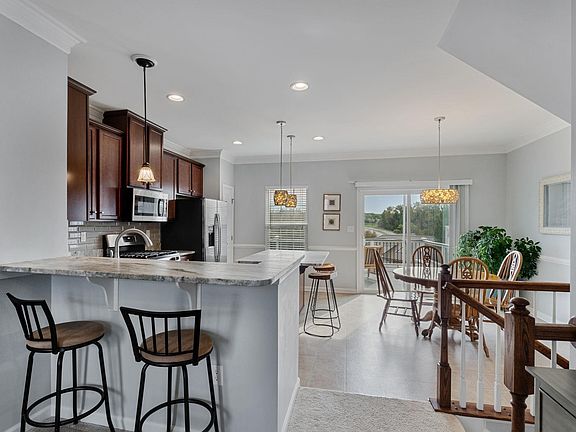 Come see for yourself this pristine and move-in ready townhouse! The home is great for anyone with an active lifestyle and an excellent option for investors! This incredibly convenient home could be yours by the holidays. Ask about the first year rate buy down. Every room has been painstakingly cared for and improved by the Seller. The primary living level is sure to please with leathered granite island, tasteful tile backsplash, stainless steel appliances, updated lighting, crown molding, chair rail, pantry and more! The 18' x 16' Trex back deck is amazing. Throughout the home you'll fine countless updates including tile work, ceiling fans with lights, trim, closet finishing, and window treatments. The primary bathroom shower has 2 full body shower systems! The tile work in both full bathrooms enhance these spaces. All kitchen and laundry appliances convey. The laundry room is located upstairs with the 3 bedrooms. The terrace level could be a fourth bedroom. Don't miss the garage! All floors are above grade. HOA fee includes front yard landscaping, trash pickup, snow removal and community playground maintenance!