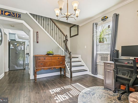 Warm, inviting and Move in ready! This Three Bedroom Two Full Bath Single Family home located in the Hilltop Subdivision has wood floors throughout and a recently added full bath on the main level. From the entry hall you can enjoy the living/dining area and the kitchen with updated appliances and a center island. Three bedrooms and one full bath are located on the second level. Large backyard with a shed with lots of storage. Unfinished basement. Large front porch at the front of the house and a driveway that can easily accommodate several cars. Only 1.5 miles to I-95 and only 5 miles from the inner harbor!