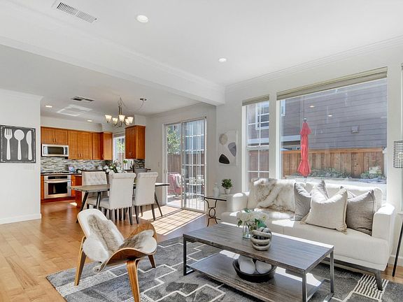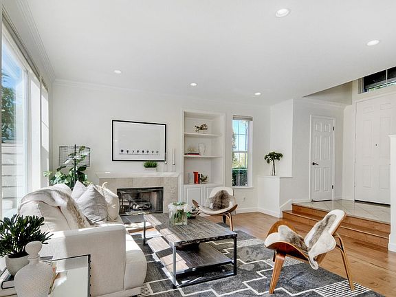 Welcome to coastal living in this bright and updated home in the popular Redwood Shores. Enjoy true open-concept living with a seamless transition from living room/dining room/chef's kitchen complete with gleaming wood floors, fireplace, and oversized picture windows. Sliding doors usher you out to the backyard, an entertainers dream, with custom-built raised planters, flagstone patio pavers, stone sitting area and propane fire pit. Upstairs has brand new carpeting, an oversized master suite with vaulted ceilings, multiple closets, another full bath, two bedrooms with water views and an oversized fourth bedroom that can easily double as a home-office or family room. Other features include: central a/c, laundry room and guest bath, two-car garage, attic space for extra storage, interior and exterior recently painted. This gorgeous home sits on a corner lot just steps from canal paths, green spaces and playgrounds all within the prestigious Belmont-Redwood Shores School District.