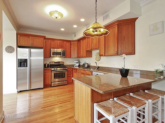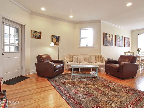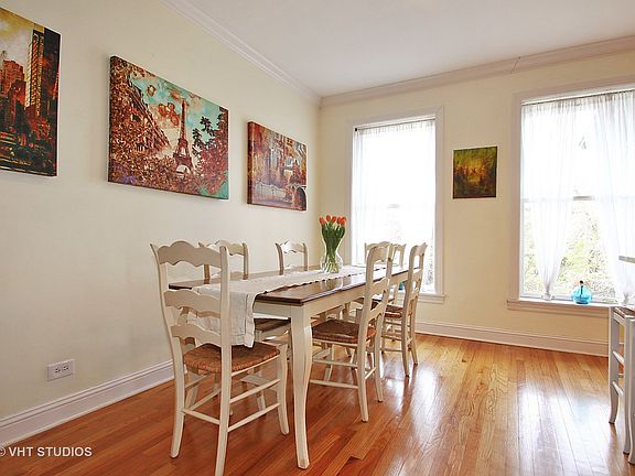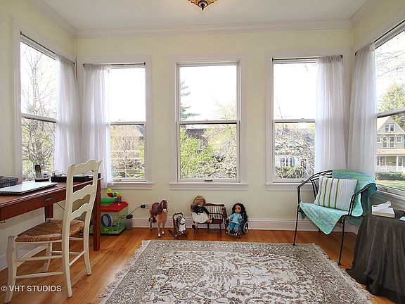 Completely updated 3 bedrooms, 2 baths, GREAT kitchen, in unit laundry, garage parking, plus a wrap around deck, 1 block to train and Central St. all for $350? YES! Freshly painted, sun filled unit with open, flexible floor plan. Just move right in. Everything is done. Expansive opens to deck and features a walk-in closet, double vanity, tub and separate shower. Kitchen has all SS appliances, granite counters, opens to cheerful sun room which would be perfect breakfast room. You decide how to use dining and living room space which also opens to wrap around deck. Building was a gut rehab in 2003 which included all new windows. Enjoy charming Central St with numerous restaurants, coffee houses, spice house, great bakery and so many interesting shops. Bus line and Metra are also 1 block away. 3 parks are also 1 block away and short distance to the lakefront. (Pictures taken when occupied. Now freshly painted in neutral color.)