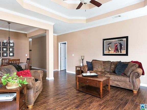 This is ONE STORY living at its finest! Centrally located less than 6 miles to both the quaint downtown shops of Montevallo and the great shopping and dining in Alabaster and only 4 miles down Smokey Rd to I-65 so you miss the Alabaster rush hour traffic. Bathed in natural light, this immaculate, move-in ready and meticulously maintained home boasts luxurious HARDWOOD FLOORS throughout. The GREAT ROOM features tray ceilings and a brick fireplace. Coupled with the BREAKFAST NOOK and FORMAL DINING ROOM, you have a wonderful open feel. The spacious OWNERS SUITE features a walk-in closet and luxurious SPA BATH equipped with a JETTED TUB, SEPARATE SHOWER, and DOUBLE VANITY. The walk-up attic will make a wonderful future BONUS ROOM, yet still offer plenty of storage. Enjoy nice fall evenings on the large patio while the kids and pets play in the fenced backyard, or better yet, take a blanket and sit by the lake to watch holiday fireworks at Veterans Park. USDA 100% FINANCING AVAILABLE.