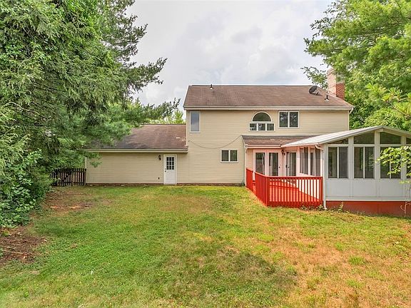 Franklin Park convenient location is home to this Brick&sided 2 story w/2 car att garage.Exterior covered entry leads to 2 st wood foyer. Be impressed w/fresh paint throughout most of home. Spacious living room offers picture window w/great view&custom plaster ceiling.Home also boasts a form din rm or more casual use cld be den/office.Fully equipped eat in Kitchen has a nook for table&breakfast bar/peninsula.Kitchen fully open to family room that offers a woodburning fireplace w/slate hearth,surround sound&double doors to 3 season rm offering 3 walls of windows,view of mature trees&double doors to recently stained deck.Convienent 1st flr also has laundry w/cabinets,storage&tub+powder rm. Take newly carpeted steps to 3 bedrms all w/new carpet.Master suite offers vaulted ceiling w/sitting rm/office-balcony spacious walk in&master bath w/soaking tub&2 vanitites,separate shower&commode.2 other bedrooms share hall bath w/ceram flr&dbl basins.Finishd walk out lower level has huge game room.