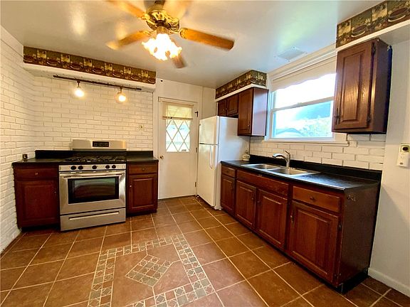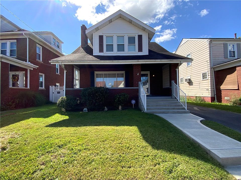 Nice SOLID BRICK 2 story, 3 bedrooms with 2 FULL baths. Hardwood floors throughout. ALL appliances included, even the washer & dryer. LARGE, covered front & back porch. New front steps & sidewalk. 1 car garage with alley access. Great location to shopping & Rt 376. Home Warranty!