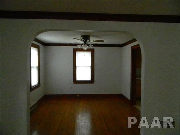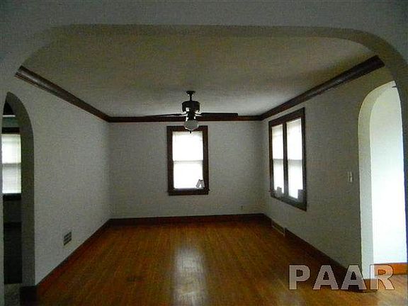 Don't miss out on this wonderful 3/4 bedroom in East Peoria. Hardwood floors and crown molding. Large 2 car garage. Fresh paint throughout. Home sits on double lot, the lot to the left belongs to this home. Must see inside!!!!
