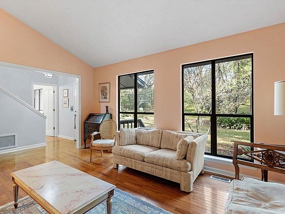 Nature-Lover's Dream: Custom Contemporary Home on Wooded Acreage in NE Tallahassee! Escape the ordinary & embrace tranquility in this captivating custom-built contemporary home nestled on a sprawling 2-acre wooded lot on a secluded, sought-after private street off Ox Bottom Rd. This home offers the perfect blend of modern comfort and natural charm. Soaring ceilings & gleaming hardwood floors create an airy & inviting atmosphere throughout the living, family, & dining rooms. Gather around the cozy brick fireplace in the expansive family room, or curl up with a good book in the charming library nook featuring built-in shelves and cabinets. You'll enjoy the spacious kitchen featuring a breakfast bar, large bay window (stunning views), an eat-in kitchen space, & a convenient pass-through window to the screened porch - perfect for seamless indoor-outdoor entertaining. Relax & enjoy the tranquility on the screened porch while watching the birds feed & taking in the natural landscape of the 2.02 +/- acre wooded lot. In addition to the family room, the separate living and dining rooms provide additional space for gatherings, home offices, or studios. The guest half-bath features a vibrant and unique Mexican sink and matching mirror. All bedrooms offer plush new carpeting for added comfort. The oversized master suite is a haven of peace, featuring a spacious seating area, high ceilings, breathtaking treetop views, a large walk-in closet, an en-suite bathroom, AND a 7x6 storage room. The other bedrooms are generously-sized and share a double-vanity bathroom with private facilities. There's even a 6x8 office/craft-room with floor-to-ceiling shelving and windows on 2 sides that bathe the room in natural light! The 2-car garage is just off the kitchen for easy access & with a 2020 roof & 2023 HVAC system, you're sure to enjoy peace of mind! Don't wait to explore the many features of this beautiful home located in a truly special setting!