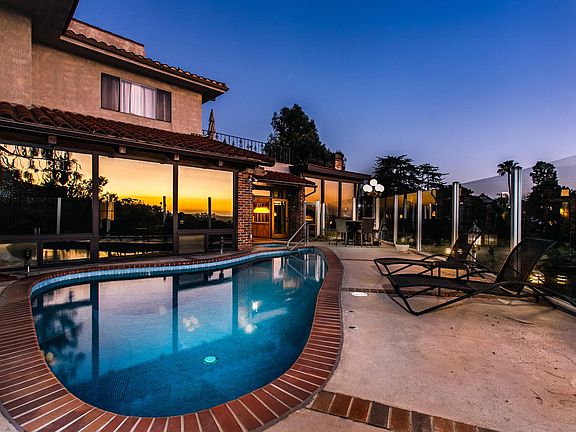 Serenity and breathtaking views await in this private and expansive villa nestled high in the Hollywood Hills above the Magic Castle. Featuring a private lagoon pool and spa, this sprawling European style 1 and a 1/2 beds ,2 bath villa, features nearly 2000sqft of spacious sun filled rooms looking out onto the city. Enjoy immense and glittering ocean, city lights, and canyon views from your hillside pool and spa, the kind of views that California Dreams, and memories, are made of. Master bedroom features en suite bath plus french door access to a separate sunroom with pool views that could be utilized as either a private office or a child's/ guest bedroom. Take in twilights from your sunken fireplace with wrap around modular sofa, prep dinners on the terrace in your newly remodeled kitchen, and greet the morning from the sunroom, looking out onto the brick pool deck. You have your own private entrance, garage and driveway parking. Other features include washer and dryer, formal living and dining room, an entertainment room featuring a billiard table, marble bathrooms and much more. Available furnished or unfurnished for a one year lease. Please contact agent directly to schedule a showing. Delivered furnished or unfurnished. Pool table and sunken couch to remain. Owner pays for pool and gardener.