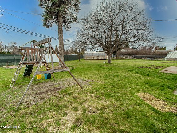 5 bed, 2 bath home on .27 acre lot in Coeur d'Alene (2 basement beds non-conforming). Kitchen is completely updated with granite countertops and tile flooring with granite bar overlooking living room which features a gas fireplace. Stainless steel appliances. Original hardwood floors, newly refinished. Updated plumbing and bathroom fixtures. New vinyl windows installed on upper level in 2019. Large family room in the basement with new carpet and LVP throughout lower level. New furnace in 2021, new AC and water heater in 2022, all with 10-year transferable warranties. Huge fenced backyard with underground sprinklers has raised garden beds and a 20'x12' greenhouse. 1 car garage with a workbench. Low maintenance vinyl siding plus new gutters in 2022. Fresh interior paint and NO HOA!