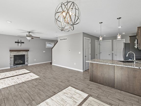 Quality bi-attached home featuring 4BR, 3 1/2BA, over 2,000 sq ft finished living space located in the Heritage at Grimes. The main level features an expansive open concept floor plan with wood-look porcelain tile flooring, dining area & nicely appointed kitchen with granite counters and stainless steel appliances, upgraded cabinets/drawers with soft close, walk-in pantry and plenty of cabinet storage too. A half bath on the main level. The upper level features a full bath off two nice sized bedrooms, a master bedroom with a full bath,tiled shower, and large walk-in closet. Home is very energy efficient, featuring a 96% efficient furnace, upgraded BIBS, foam insulation and 35 yr ltd warranty on shingles and also has cement board siding. DC-G schools. Within walking distance of Heritage Elementary School, parks, trails, restaurants, and shopping. Easy access to 141. This is a gem!!