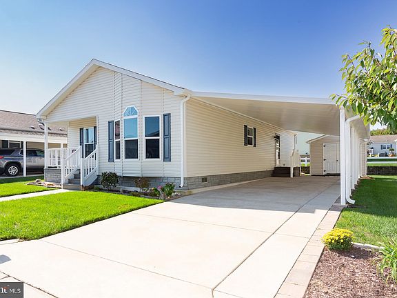 Welcome home to the Meadow model in the desirable adult community of Summerfields West. This immaculate home has been lovingly cared for over the last 7 years. The current owners have made many updates with detailed consideration for the comfort and convenience of themselves as well as the future owners. As you walk up the front steps take notice of the covered front porch where you can relax and unwind or greet your neighbors on their daily walks throughout this active community. Enter through the front door into the large open living room and dining room featuring Pergo waterproof laminate flooring which extends into the hallway and bedrooms for the ease of low maintenance. Several windows in the main living areas, including a large bow window in the dining room, allow for an abundance of natural light throughout this home. The spacious kitchen featuring a breakfast bar with updated pendant light fixtures and included stools is perfect for the chef in your home with plenty of counter space, tons of cabinet storage, an included 5 burner gas range, built in micro-hood, french door refrigerator with bottom freezer and ceiling fan. Down the hallway is a nice sized spare bedroom with a walk in closet and a full hall bathroom featuring a Safe Step Walk-In Tub for the convenience of having a bath tub without the safety concerns of getting in and out of the traditional type. At the end of the hall is the large primary bedroom with a generous walk in closet and private bathroom which is updated with a Bath Fitters low entry shower with glass shower doors. At the back of the kitchen you will find the mudroom/laundry room with storage cabinets above the included washer and dryer. Outside the back door take note of the updated Trex deck up and down staircase with vinyl railings which lead to both the front and back of the home. The extra wide driveway with the 15' x 35' car port is a wonderful extra convenience for getting to and from your car when the weather isn't nice. The 10' x 14' shed is larger than you typically see in this community and has electric as well for extra storage and added convenience. The landscape of stones, gardens and trees just add to the obvious pride of ownership of the current owners and add extra character for your enjoyment. There is nothing to do but pack up and move right in to this lovely home. Schedule your tour today. **Note: The monthly fee of $745 includes the ground rent as well as all of the wonderful amenities this community has to offer including: Outdoor community pool, club house/community center, lawn maintenance, common area maintenance, snow removal, and taxes.