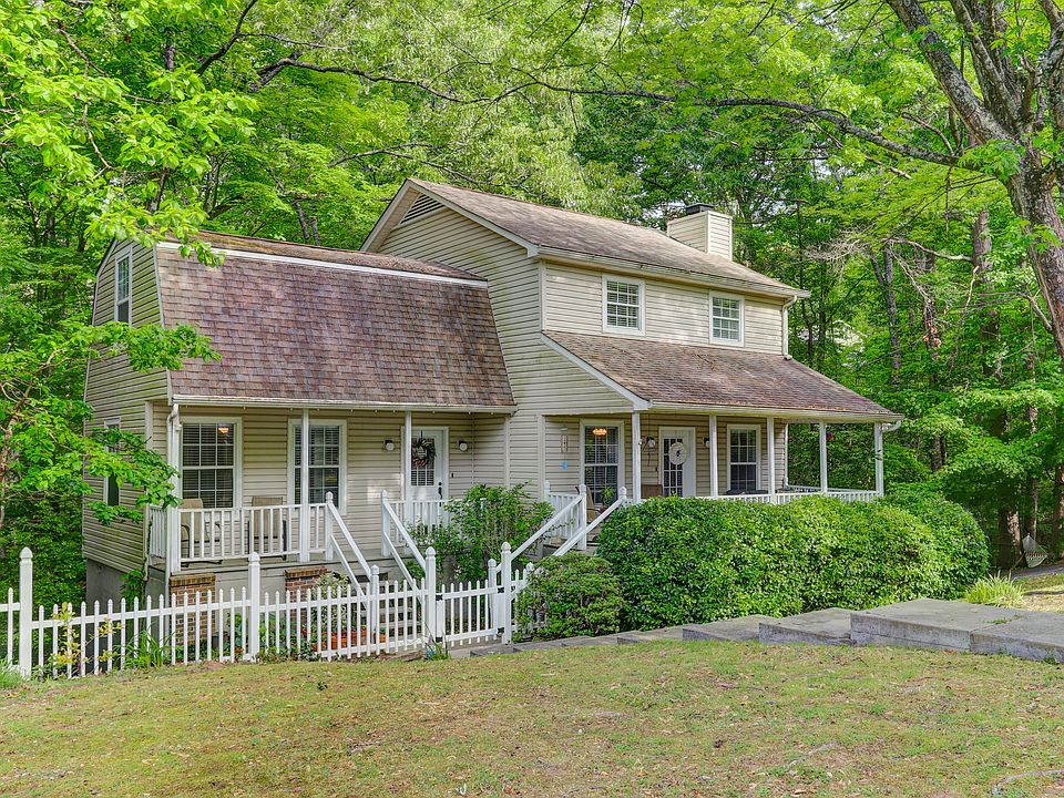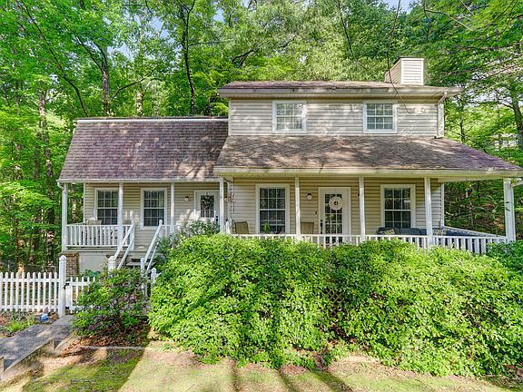 Adorable home in a mountain like setting with woods you own all around you! Inviting front porch, decks and covered balconies to enjoy in the 3 BR, 2 BA, den, spacious kitchen,Floors are hand scraped and carpet, ceiling in LR has natural wood beams. and a woodburnng fireplace. Basement hosts garage and a workout room, New Trane HVAC 2017, New deck steps 2020