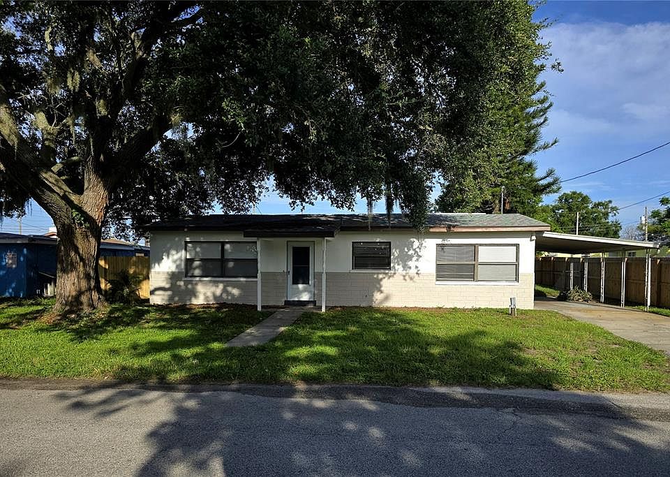 Cute little house, huge fenced backyard, convenient location to everything on 19. There's a third room that has always been used as a bedroom, it has a door and window but no closet. There is a second shower off of that room, along with a third sink. This house is on a well and septic, so no water or sewer bill. It's on a dead-end street, so less cross traffic. It has a huge, old oak tree in the front yard.