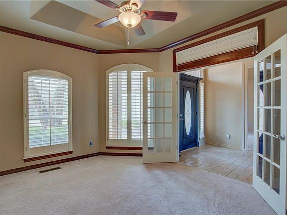 Guard Gated, Golf Course Community! This stunning open floor plan looks out over the 14th Fairway of Oak Tree's golf course. Offering 3 bed with 3 FULL bathrooms, plus a study. Featuring a great open living room with a beautiful fireplace, built-ins with an area big enough for massive flat screen, and large windows with remote-controlled shades. Fresh/modern paint, lots of storage, beautiful kitchen cabinetry, granite kitchen counters tops, breakfast bar, kitchen island, newer appliances, plantation shutters throughout, newer hardware, modern light fixtures, a storm shelter, and so much more!