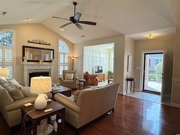 Fantastic Opportunity to Live the Care Free Life! Single Level 3BD/2BA Carriage Home w/2 Car Garage! Easy Living Floorplan with Formal Living Area, Carolina Room & Spacious, Open Kitchen! Light, Bright, Vaulted Living Room w/Gas Fireplace. Carolina Room w/Beautiful Plantation Shutters. Actually, there are Plantation Shutters & Hardwood Flooring Throughout! Open Spacious Kitchen with Solid Surface Counter Tops, Tiled Flooring, Breakfast Nook, Breakfast Bar & Pantry. Owners Suite w/His & Her Sinks, Large Walk In Shower & Spacious Walk In Closet! HOA Maintains the Landscape and Exterior. Love the Life You Live In! Hit the Beach & Don't Worry About the Yard! Prestwick is a Premier Guard Gated Golf Course Community in an Excellent Location! HOA Fees Include use of Jr. Olympic Sized Pool, Cabana & 3 Tennis/Pickle Ball Courts, Cable TV w/Premium Channels & Internet, Security Guards, Trash, Yard Debris & Recycle Pickup! Pete Dye Designed Golf Course within the Prestwick Community & Additional Tennis Stadium Membership Available. Great Location to Award Winning Lakewood Elementary School! Access to the Beach through the Myrtle Beach State Park is just 1/4 mile away! Located Just Minutes to Popular Market Common, Dining & Shopping! All. Sq. Ft. Meas.are Approx. & Not. Guaranteed. All Sq. Ft. Measurementsare to be verified by the Buyer or the Buyer's Agent.***LSV TypeVehicles (Golf Carts) are Allowed.***