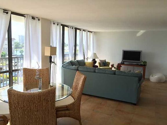 Reduced Ready to Sale Huge 2 /2 updated corner unit, floor to ceiling windows with palm tree out of all windows. sit on wrap around terrace and watch the boats go by, have breakfast at the 12 foot granite counter top, The kitchen/living room area is large, bright and totally open, stainless steel appliances. The beach is across the street. The pool is salt water, play tennis ,shuffle board, Baci Count. Bring your laptop, toothbrush and bathing suit to this serene home.