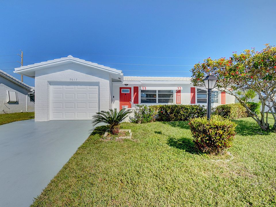 This beautiful 2 bed 2 bath single family home is a must see. Complete with a renovated kitchen, granite countertops, wood cabinets, lots of storage, and a unique office area. This impeccably maintained residence has brand new tile floors and laminate floors. There is a formal dining room as well as a den. The bathroom's have been renovated and the master bedroom has a walk in closet. Air conditioner 2014, Hot water heater 2015, updated electrical panel, and an extras freezer in the garage. The community welcomes pets and has plenty of lit sidewalks for walking. The Club house has a huge pool, fitness, billiards, shuffleboard, and 9 hole golf. What more can you ask for? Located close to shopping, I-95 and a quick ride to the beach. Call today for an easy showing. Priced to sell fast!