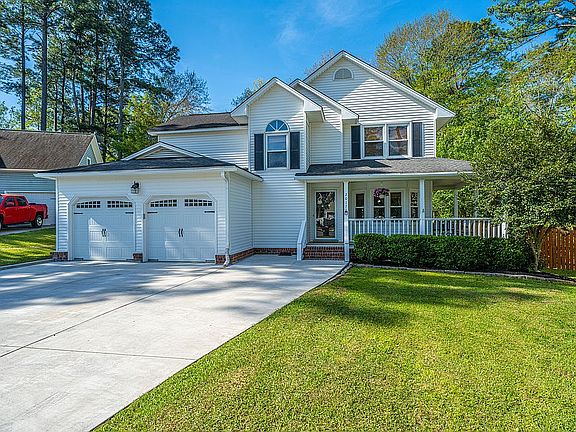 Custom built 3 bedroom 2.5 bath home situated on a cul-de-sac lot in Pine Forest Country Club. This 1954 sq foot home has been meticulously taken car of and features a welcoming wrap around front porch, a two-story foyer, living room/office, formal dining room, an eat-in-kitchen with a pantry and bay window, a 2 story great room with a gas fireplace, a spacious laundry room, a nice sized rear deck and a large, fully fenced park-like back yard with mature landscaping. The kitchen which opens to the great room has been recently remodeled/updated with granite counter tops, a tile back splash, a farmhouse kitchen sink, tile flooring and new stainless-steel appliances. All of the bedrooms are located upstairs. The master bedroom is bright and spacious with a cath/vaulted ceiling and a walk-in closet. The master bath boasts tile floors, dual vanity with granite countertop, a garden tub and separate shower. Additional upgrades include hardwood and tile floors throughout the downstairs, smooth ceilings, an encapsulated crawlspace, new garage doors and door openers in 2021, a new privacy fence, new shed, new air handlers in 2021 and a new and expanded driveway that has room to park up to 7 cars. The carpet is newer and everything has been freshly painted within the past year. Residents are not required to be members of the Country Club but Club memberships are available. The golf course is semi-private and does allow public play. Private golf carts are permitted and as you drive through the neighborhood you will probably see several people riding around visiting neighbors, heading to the golf course or just riding around enjoying the day. Conveniently located to shopping, restaurants, Pinewood Prep, I-26, Volvo, Boeing, Mercedes and much more. Downtown Charleston and the beaches are also just a short drive away.