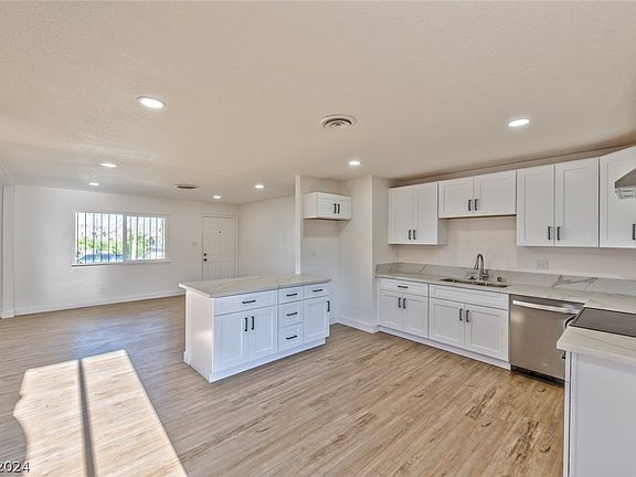 Step into this beautifully updated home featuring an open-concept front living room that creates a welcoming atmosphere for both family gatherings and entertaining guests. The kitchen boasts custom cabinets, stainless steel appliances, and recessed lighting, complemented by a stunning accent wall in the dining area. Experience the luxury of wood vinyl plank flooring throughout the home, adding both style and durability. The spacious primary bedroom offers a tranquil retreat with its accent wall and closet space. Indulge in the spa-like primary bathroom, complete with a new vanity, custom tile walk-in shower, custom cabinetry, quartz countertop, and all-new fixtures. Convenience meets functionality with a separate laundry area, making chores a breeze. Outside, the backyard provides endless possibilities for outdoor activities, gardening, or simply relaxing. Don't miss out on this must-see property that combines modern elegance with comfort. Schedule your viewing today!
