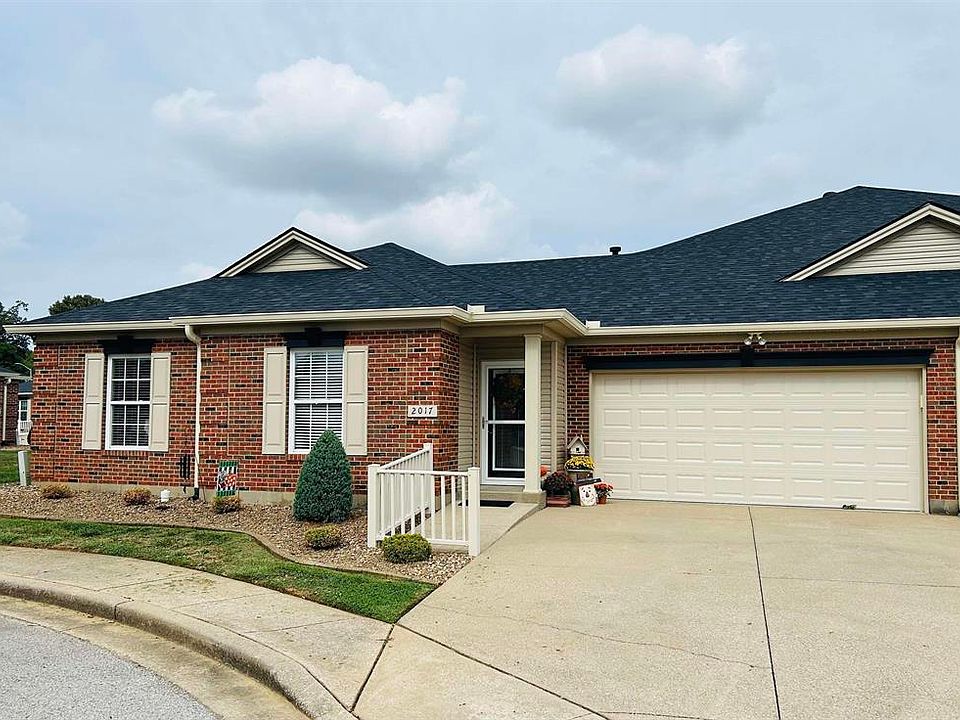 This immaculate brick condominium with 2 Bedrooms, 2 Full Bathrooms, and a 2-Car Attached Garage demands your immediate attention! Situated wonderfully in Heartlands Gardens, this beautifully landscaped residence offers unending delights with highly desired east-side shopping and other amenities only minutes away. Quartz countertops, an eat-in kitchen, expansive cabinetry with pull-out drawers, and stainless steel appliances are highly attractive features. The expansive living area with abundant space for formal dining are welcoming attributes that assure ease of movement and graceful entertaining. Nine-foot high ceilings with elegant crown molding are appealing touches. The large primary bedroom with ensuite bath contains a wide walk in closet and laundry facilities. The cozy patio with stamped concrete and vinyl panels permits further access to an expanded greenspace for your outside enjoyment. The property recently had new roofing, gutters, and siding installed. An oversized garage offers inset shelving for excess storage needs. Exterior maintenance is provided by the condo association - you can ease your mind! You'll have access to a community clubhouse with kitchen, exercise room, and fireplace for larger family or social gatherings. All told, this fabulous home is waiting to welcome you in - come see it!