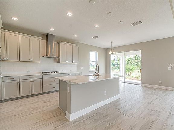 Welcome to the Crystal by M/I Homes in Woodleaf Hammock! This home is a home run as it checks off so many great boxes! With 4 bedrooms, 3 full baths and a 3-car garage, everyone has great space. This home is beautifully upgraded with gorgeous finishes including tray ceilings, upgraded plank style tile flooring in all main areas, quartz countertops in the kitchen and all 3 baths, extended lanai, beautiful 42" kitchen cabinets (Harbour) color. The Crystal has a fantastic open and bright kitchen and great room with two sets of sliding glass doors that open up to the 10' x 29' covered lanai. The gourmet appliance package completes the elegant look of this home and includes GE Profile stainless steel vented range hood, a gas cooktop, built in wall oven and microwave and dishwasher. Truly too many options to fully list, but this home also includes 5 ¼" baseboard moldings, brick pavers on the driveway and lanai, kitchen tile backsplash, 8' tall interior doors, recessed lighting, gas tankless hot water heater, a floor outlet in the family room, tile roof. Every M/I Home comes included with a 15-year structural, transferable warranty...best in the industry. Come make Woodleaf Hammock your new home! Beautiful community with swimming pool, summer kitchen, tot lot and playground, dog parks, 2 pickle ball courts, 2 gated entries. VERY LOW HOA and CDD fees.