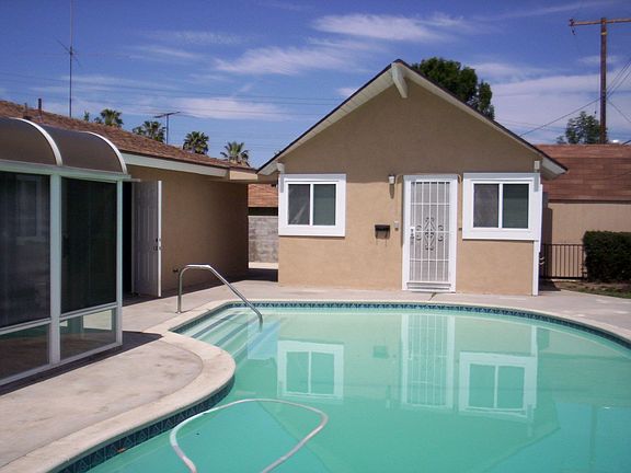 2 ON A LOT CORONA POOL HOME has 3 bedrooms 2 bath, Remodeled and looks wonderful ! Granite kitchen counters, Stainless steel appliances, fashion paint , fireplace, air conditioning, RV parking. Sun room. Little house is small studio with kitchenette w/ micro and fridge. Great for a home office or guests. Mirrored closet doors, granite bathroom counters, full finished storage shed, more and more. You really have got to come see this home to appreciate all the details of the remodel. Truly nice home.