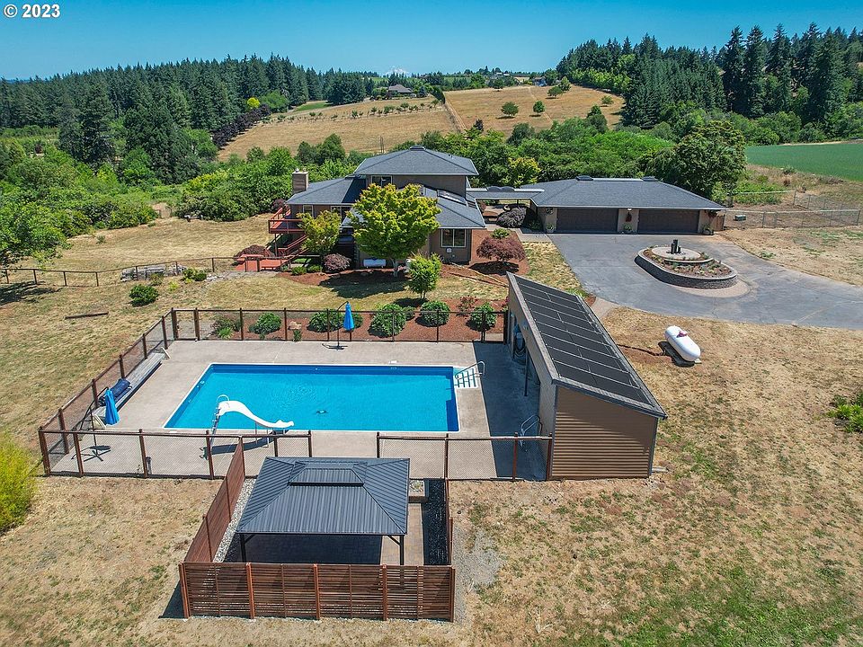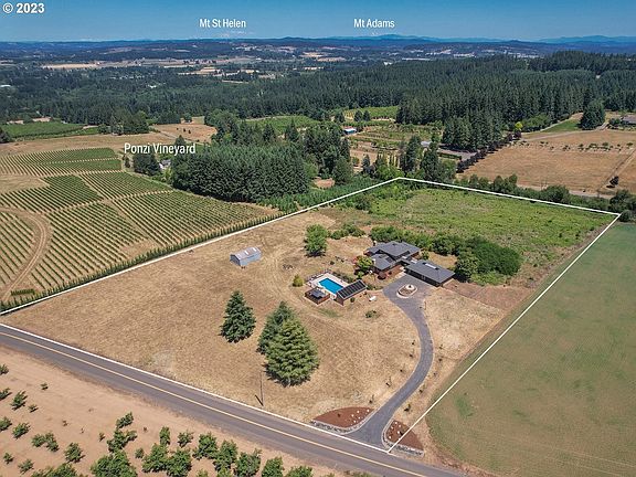 If you're searching for a spacious and scenic retreat in the SHERWOOD HIGH SCHOOL DISTRICT, don't miss this rare opportunity to own 10.35 acres of useable land on Mountain Home Road with stunning views of Ponzi's vineyards and surrounding mountains, including Mt. Adams, Mt. Saint Helens, Mt. Rainier, and on clear days, Mt. Hood! The three-story home features panoramic views from every level and most rooms, ensuring you'll never tire of the breathtaking vistas. The primary suite occupies its own floor and boasts custom built-in storage for his and hers closets. With bedrooms on every level, two kitchens, and a massive bonus room, this home is perfect for entertaining or hosting guests. Take your gatherings outside to the impressive decks or the inviting pool area for an unforgettable experience. The property has been well-maintained with newer features like a furnace, septic system, generator, gutters, windows, electrical upgrades, pool liner, and heater. There's simply too much to list ? you need to see it for yourself! Schedule a viewing today and experience the peace and tranquility of this amazing property.