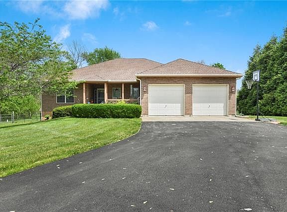 BACK ON THE MARKET AND NEWLY RENOVATED!! This beautiful 5BR 3BA custom-built one-owner home sits on close to 2 acres! Property is fully fenced with large trees surrounding the sides of the property and throughout, giving you the privacy you’ve always wanted. This brick-wrapped ranch style home offers the highest quality in every corner and features high ceilings throughout, even in the finished basement! Windows line the back of the home so you can take advantage of the beautiful views! The main level includes a formal dining room, great room with brick fireplace which has never been used, tile and hardwood floors, wonderful country kitchen that has just been updated with new quartz countertops, new backsplash, and new paint throughout with plenty of cabinets, and 3 bedrooms. The master suite features a jetted tub, large shower, double vanity, and a huge walk-in closet. The walkout lower level features a full second kitchen, large family room, two bedrooms, two storm shelters, and a separate entrance perfect for separate living quarters. The homeowners just had the driveway refinished this spring, new roof installed last year, and new HVAC 6 years ago. There's a POOL which was new two years ago, with a brand new deck that was just completed last year ~ perfect for summer fun! The backyard has a nice deck and patio plus storage shed. Plenty of room inside and out to entertain all your family and friends! This Johnson County home's location is a dream - highway access is only 5 minutes away, and all three Spring Hill Schools are within 5 miles, including newer Wolf Creek elementary.
