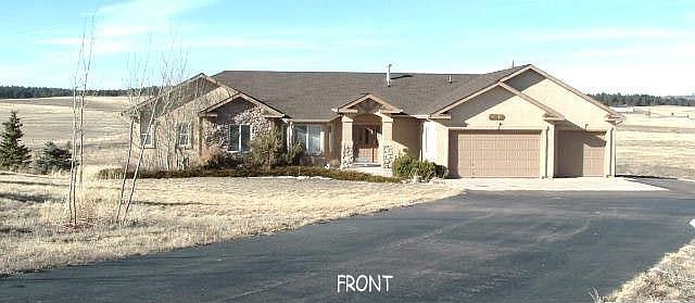 Single Family Home for TRADE in Monument, CO 80132. TRADE for a smaller home on large treed ranch with barn(s) in Black Forest, Eastern El Paso County or Teller county.. My ranch style stucco home is on 2.5 acres with 4 large bedrooms + office, 3 1/2 baths and finished 3 car garage. Total: 4752SF Finished: 3816SF - Main: 2408SF Basement: 2344SF - (60% Finished with 936SF storage area). Home features hardwood floors on main level, bay windows, custom blinds, wrought iron stairwell, three gas fireplaces (in master bedroom, living room & family room), gourmet kitchen w/stainless steel appliances (refrigerator, washer, dryer EXCLUDED). Wet bar and new carpet in basement, master bedroom has attached 5 Pc bath w/jetted tub, central vacuum, central A/C and humidifier, paved driveway, landscaped front w/sprinkler system, large 500SF deck, backs to open fields. Inside recently painted. Underground utilities. Send your name, telephone number and description of your trade property. Neighborhood Description Open fields, quiet, peaceful.