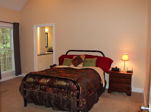 Cute home in golf course community. Open floor plan with vaulted ceilings, gas fireplace in living room. Great kitchen with gas range and stainless appliances, white subway tile backsplash and open to the living area. Large breakfast area. Very large utility room that has plenty of room for storage/shelving. Private back and side yard with woods. Pets nego./no fence. Do not call office for showing