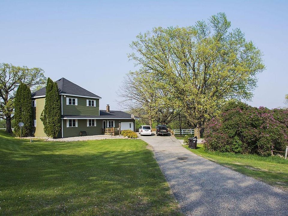 Rare find hobby farm on beautiful 20 acre country setting with mature oaks & panoramic lake views! Only 7 miles north of town! Home features newer siding, windows, doors, shingles, R/O unit & other interior updates! Spacious living room, dining and kitchen for entertaining. Heated attached garage currently used as living space, easily converted back into a spacious 2 stall garage. Out buildings include horse barn and 30x48 heated garage with 13' overhead door! Listing Agent related to seller