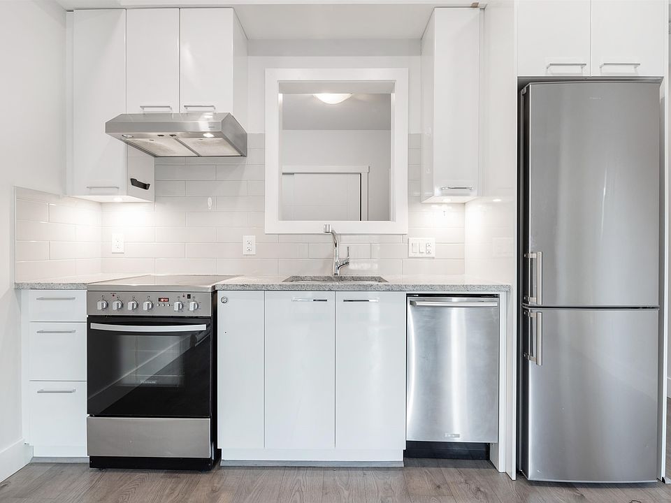 Perfect starter home with investment value at the Benjamin!. Have peace of mind being covered under new-home warranty & proposed skytrain station! 110 sq.ft. patio facing courtyard! The open concept living includes laminate flooring & air Conditioning. Kitchen features white cabinetry, stone counters, SS appliances. 4 piece bathroom contains granite counters, tile flooring & soaker tub. Tasteful finishings throughout. The Benjamin is half a block to Nicomekl Elementary School. Great location to downtown Langley, shopping, restaurant's, Save On Foods and many other amenities. Not far from the Nicomekl River Habitat, walking trails & lagoons. Rentals Allowed, 2 pets (dogs/cats) are welcome (no size restrictions). Open Houses: 5-6:30pm Thurs June 9, 2-4pm Saturday & Sunday June 11th/12th.