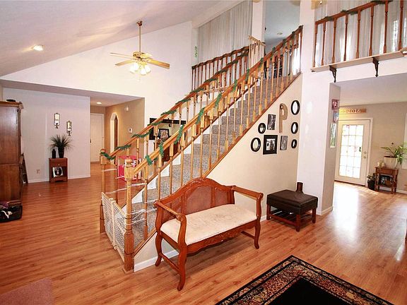 Check out this classic home with great country views. This unique home offers 4 bedrooms and 3 baths with living on 3 floors. The eye catching staricase welcomes you as you come in and the large main living offers many areas for family living. The large family kitchen offers tons of cabinets and pantry. Laundry and 2 guest rooms with full bathroom are located on the main level. The loft offers bedroom with open bathroom and large walk in closet and private balcony with peaceful views. The Basement offers large family room with wet bar, and Master Bedroom with tile flooring and master bathroom. Enjoy the wooded views form this homes rear deck and fenced back yard. Could this be your next home, come take a look and see!