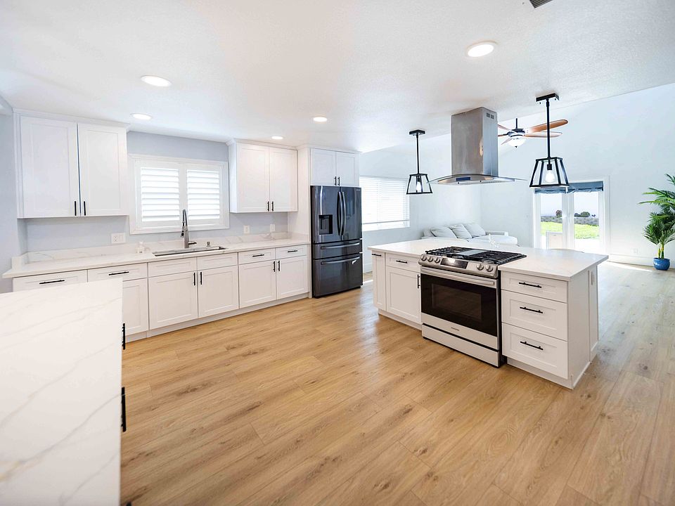 Beautifully upgraded home in South Corona! 3 bedrooms, 2 baths, completely remodeled kitchen in 2024 (open floor plan), new laminate flooring throughout, new water softener installed in 2024, WIFI thermostat for AC and Heat, master bedroom with walk-in closet, fireplace in living room, very spacious backyard, washer, dryer, and refrigerator included, great location, close to 15/91 freeways and Dos Lagos shopping center. Owner pays for yard maintenance. Tenant pays for all utilities including water and trash