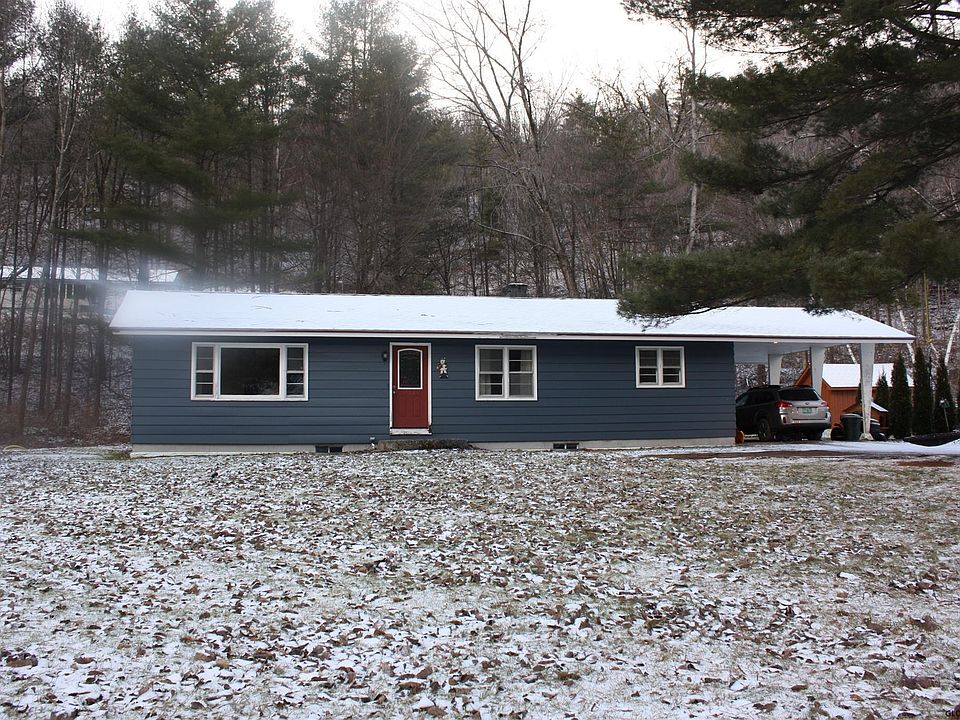 Sitting far off the road is this sweet three bedroom, one bath ranch. Open kitchen, dining, living room floor plan. Kitchen has plenty of counter space and lots of cabinets. Rooms are all freshly painted. Full basement, could make a great workshop, game room or family space. Carport attached to house. Large 1 Acre lot. Conveniently located on NY 22.