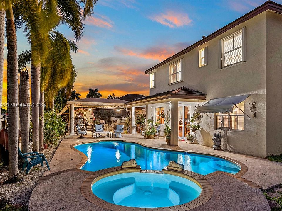 Tropical oasis in South Miami Heights! Upon entering this impressive home you will be greeted by high ceilings, beautiful arched doorways, and spacious living areas. Natural light floods into the large kitchen which also has the perfect view of the pool area. Outside you will find an expansive pool and courtyard perfect for entertaining, gatherings, and enjoying sunsets. 5 bedrooms, 3 full bathrooms, 1 half bathroom, and a 2-car garage. This home is well equipped with plenty of parking, and an additional gated area for your boat or RV. Located conveniently next to the turnpike and US 1 giving you direct access to all that Miami has to offer. Don't miss this opportunity to own your own private paradise. Chandeliers not included in the sale.