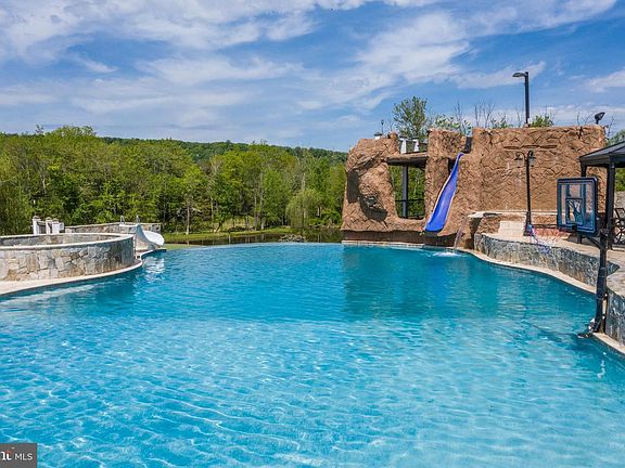 Live the life you have always dreamed of in this estate home in the ideal Leesburg, Virginia location. With magnificent indoor and outdoor spaces, including a resort-style pool with spa, three golf greens, pond and custom playground, this home has something for everyone. A gated entry and long, flowering-pear lined regal driveway lead you to this magnificent home framed by lush landscaping and picturesque rolling hills on nearly eight pristine acres. Greet your guests in style in the grand foyer with custom molding and gleaming wide-plank hardwood flooring. The home's interior is spacious with approximately 8,000 square feet on three finished levels. It will be fun and easy to cook for family and friends in the well-equipped chef's kitchen featuring furniture quality cabinets. Large over-sized family room with gas fireplace is the perfect place to entertain. The main level office, 2nd family room, bedroom and full bathroom complete the main level. The upper level includes the owner's suite with walk in closet, laundry room, bathroom and sitting room. There are 3 additional bedrooms on the upper level, two with en suite baths and walk in closets. The lower level has a full apartment with a separate entrance. In warm weather, open the doors to the 1,800 square foot partially screened in deck off the kitchen or go down the grand staircase to a 2,400 square foot covered patio with 2 outdoor full bathrooms (including 4 showers). An entertainer's dream. Enjoy fishing in the one-acre pond, stocked with bass, sunfish, and KOI. This property is a dream for golf enthusiasts with over 10,000 square feet of true feel artificial turf, undulated golf greens and tees (that can hold shots from 160 yds away and the greens run up to 12 on stimpmeter), including the 3,100 square foot island green in the pond that can be accessed by a custom steel/wood/stone bridge. An additional backyard bridge leads to the creek and the wooded area that represents pure privacy and serenity. The crown jewel of the backyard is the incredible 120,000-gallon infinity edged salt water heated pool with custom lighting, an underwater cave entrance, and a two-level grotto with rainwater features and slides. The pool is surrounded by an over 9,000 square foot beautiful travertine patio and tile pool decking. Kids of all ages will play on the 4000 square foot play area with custom playset and bocce ball court. Entertaining - definitely. Perfect for events, weddings, or family gatherings. Outdoor full bathrooms and changing rooms. Covered conference center with gas fireplace. 2 Tennis courts. 1 hard court recently resurfaced as of 2019 by Bishops tennis. 1 Har tru Hydro tennis court (under court water system) installed by Rennolds company 2017. Additional 4000 sq ft parking lot. Beautiful poured concrete paths and stadium seating and patio for about 100 people, 2 storage buildings, Wiring for lights on both courts. The septic system was updated and enhanced in 2012/2013 to accommodate large gatherings of 100+ people. LOCATION just minutes from Dulles Toll road, IAD, Leesburg Executive Airport, Route 15, convenience shopping, Leesburg Premium Outlets, Ida Lee Rec Center, Old Town Leesburg and Downtown Leesburg...an hour from Frederick, MD; Alexandria, VA; 20 min to Ashburn Metro Station. Whole-house GENERAC generator. Roof March 2021. 20173 Gleedsville Rd is also owned by the same seller and can be purchased as well. Legacy Estates is being offered together for $3,300,000. The MLS Number of the combined listing is VALO2005748 and the MLS number of the 20173 Gleedsville RD listing is VA LO441428