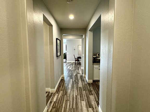 Luxury abounds in Blue Horizons with this gorgeous 3 bed, 3 bath + den gem. Built in 2018, this spacious 1,894 square foot home features stylish plank tile flooring throughout, a gourmet kitchen appointed with premium KitchenAid stainless steel appliances, stunning granite countertops, and a large island with seating for 4. The expansive 9,586 square foot lot boasts a solar-heated pool, perfect for relaxation, two covered gazebos ideal for outdoor dining and entertaining with a top-of-the-line BBQ grill area, and huge sliding glass doors that fully open to the patio for seamless indoor-outdoor living. Special upgrades include custom automated sunshades on the west-facing windows for sunlight control, a high-tech EV car charging station for ultimate convenience, solid core interior doors for sound dampening, and a well-appointed den with custom built-in cabinetry and shelves as well as an upscale under-counter wine and beverage refrigerator. The lavish master suite features a spa-like walk-in shower, further enhancing this model-perfect home's allure. An absolute must-see for those desiring sophisticated single-level living. Act quickly to experience the upscale lifestyle that awaits in beautiful Blue Horizons!