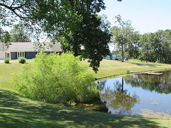Country living at its best with 10.53 acres including a large stocked pond beautifully landscaped next to this bermed home. You will love the cathedral ceiling; Master bedroom with walk out patio and master bath with separate walk-in shower and tub & walk in closet. 3 bedrooms, full bath, large living room and updated kitchen, all seasons room with wetbar and wine cooler. Large Utility/Laundry room. Save on your heating & AC with Geo-thermal heat and cooling, freestanding wood burning stove. Attached 2 car garage with extra space for the man cave. A 32x50 metal shop building with garage doors, Fenced in pasture and other buildings for your pets and animals. Everything you have been looking for! Call Today