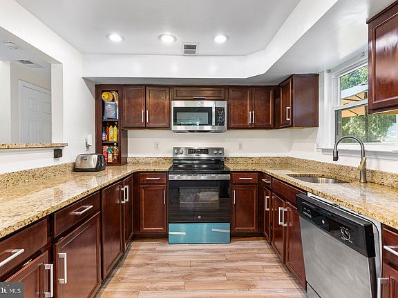 Awesome 4 bedroom 2 bathroom house on quiet cul-de-sac. Owners have recently done many upgrades including new appliances, fresh paint, and new floors upstairs. Home has rare main level owners suite with private bathroom and walk in closet. Main level also boasts large family room, gorgeous kitchen with granite counters and new appliances. Main level also has separate dining room that leads out to the backyard with concrete patio and plenty of space to create your own private oasis. Upper level has 3 bedrooms with full bathroom with brand new LVP flooring. This house is great and very hard to find single family home under 400k. Community has many amenities including outdoor POOL!! Also there are tree lined streets with sidewalks and walking paths as well as community lakes. Call and see today!!