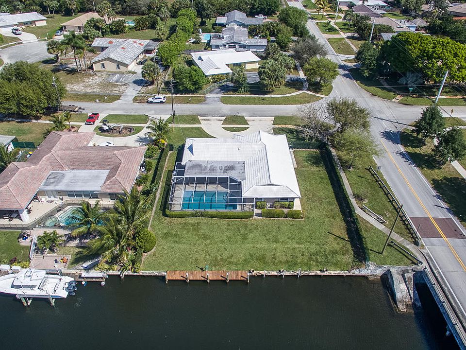 NO FIXED BRIDGES. Deep Water, interior Canal. 35' dock. Electric/Water at Dock. Fits at least a 40'boat. 8 lots from intracoastal. 15 min run to PB Inlet. Just north of PGA and Loggerhead Marina. Great, family friendly neighborhood. Nice, big side and backyard that is fenced-in. True 4 bedroom. 2 bath/2car garage. Great circular drive. Beautiful, screened-in lanai and pool. 2 living areas/2 dining areas. 2 entrances to kitchen. Freshly painted. Customize to your liking.