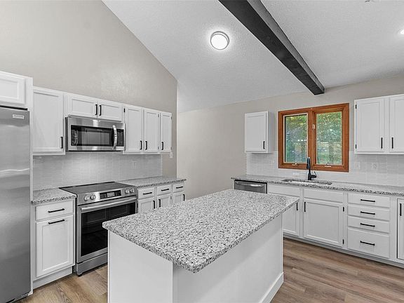 Private retreat in Pacific on 1.9 Acres! This 3 bed 3 bath home with a 2 car garage has been completely rehabbed including new roof, hvac, gutters, flooring, appliances, flooring, paint, trim, and more! This raised ranch has a completely open floor plan perfect for entertaining at the center island as well the large dining room that leads out to the wrap around deck. The main level boasts a huge kitchen with granite countertops and Frigidaire Gallery appliances and vaulted ceilings through the main/upper level. The private primary suite is spacious including a bonus room that could be an office or nursery. It has a 13x9 bathroom suite with huge custom walk in closet. The divided bedroom layout will give you the utmost privacy with the 2nd and 3rd bedroom on the finished walkout lower level. The home backs to a level yard that backs to woods and a beautiful creek. No detail was left undone on this home and it shows. No HOA, No Restrictions, No Covenants.
