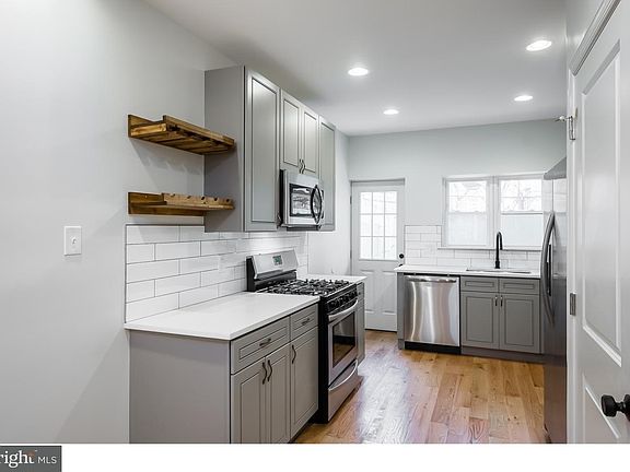Just like new! Don't miss this amazing renovated home in Point Breeze that includes an approved 10 year tax abatement and 1 year builder warranty. No detail was spared in the spacious 2 bed, 2.5 bath, home with finished basement and expansive backyard. A brand new brick facade, front steps, and iron railing greets you as you enter the living and dining area on the first floor. Tall ceilings and 6" wide solid hardwood (not engineered!) oak floors that are carried throughout the house give a warm and inviting feel to each room. The first floor features a half bath and newly designed kitchen with an extra wide stainless steel sink, striking solid white Quartz counters, open wood shelving, and a sleek black faucet. Outside you will find a new concrete patio and plenty of space to entertain or set up an urban garden. Downstairs, the finished basement with 7' ceilings provides an extra 200sqft of living space as well as a separate utility area and laundry closet for a side-by-side washer and dryer. The second floor has two large bedrooms that get plenty of light and provide lots of storage. The hall bath features a marble mosaic tiled floor, floating vanity and 60" tub. In the master you will love the wall-to-wall closets and the tiled bathroom with double vanity and walk-in shower. With all of the incredible finishes you won't want to forget that it has all new electrical, new plumbing, new roof, new windows, new HVAC, and new insulation. Located on a great block surrounded by new construction and other renovated homes, this home is the perfect location for anyone who wants more space, style and still be in close proximity to Center City, Broad St. line and 76. Also nearby is OCF Coffeehouse, American Sardine Bar, Tuck Yoga & Barre, and a soon to open doggy daycare. Make your appointment today! Listing Agent is part owner.