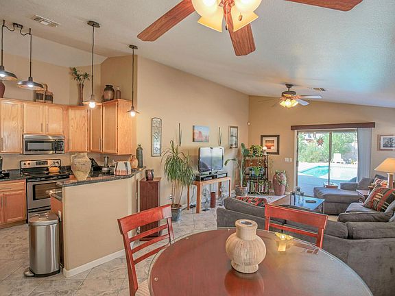 Wonderful 3 bedroom, 2 bath home with pool! No HOA! This home has it all! Open kitchen with granite counter tops, stainless steel appliances, updated hardware and breakfast bar. Separate living and family rooms. Spacious bedrooms. Master bath features dual sinks and walk-in closet. Master bedroom with private exit to backyard with covered patio and sparkling pool. Upgraded lighting and fixtures. Wood blinds. See this home today!