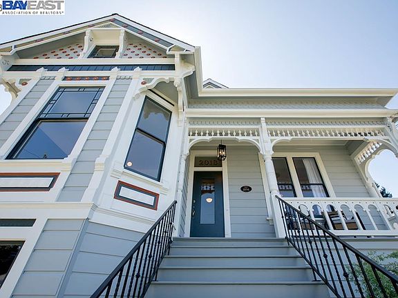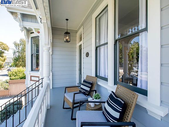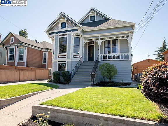 Calling all Victorian home lovers! This spectacular Queen Anne home was built in 1896 on an extra large lot and offers 4 BR, 2 BA, formal living + dining rooms, an updated eat-in kitchen, and a huge converted finished attic space ideal for an expansive bedroom or family room/home office or media room (630 SF). Characterized by spacious rooms with original architectural details, bay windows, gorgeous hardwood floors, 10-ft ceilings, this picture-perfect home is a Victorian home lover's dream! More vintage details include plate + picture rails, oversized windows, wainscoting, a fireplace, original doors, ceiling medallions and so much more. Contemporary updates include a remodeled kitchen + bathroom, new carpeting (2nd floor), new interior/exterior paint, refinished floors, new light fixtures & new furnace (2022). An unfinished street level basement w/a high ceiling (+1200 SF) offers exceptional square footage expansion potential for additional bedrooms or an in-law suite for guests or rental income. The deep backyard includes a large raised deck off the house, and a beautiful garden with a gazebo and mature & refreshed landscaping. Situated just 1 mile to downtown Park St. and Nob Hill Foods. Easy access to all things Alameda with this great central location! Vintage perfection!