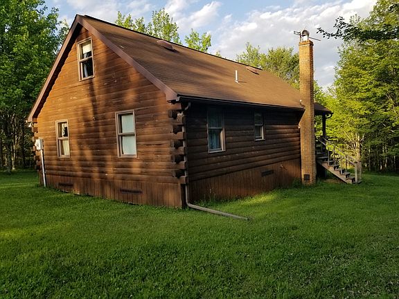 Log Home Living. 1-1/2 story log cabin on 14.42 +/- wooded acres. One bedroom and bath on main floor along with a kitchen, dining room and living room and laundry. Loft bedroom upstairs that makes a great bunk room. Woodstove is the heat source. Spacious deck and wooded setting. Less than two miles from SGL 36. Oil, gas and mineral rights do not convey. Selling furnished.