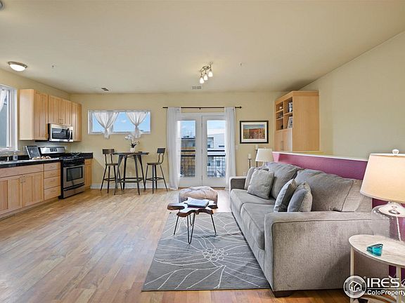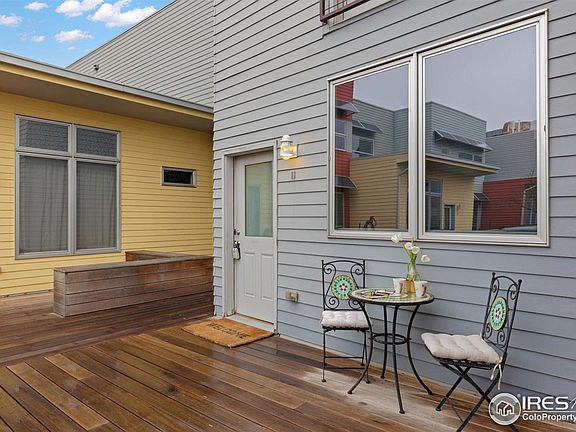 This bright & open 1BR condo in Prospect-Solar Village is the simple & efficient home you have been looking for. Soak up the sun w/ the double door French balcony overlooking the courtyard, & totally private outdoor deck for relaxing, dining, or sunbathing! Open kitchen/living area with Granite counters, stainless appliances, maple cabinets & high ceilings makes it warm & inviting. Central A/C. Common area locked storage for your bike. All sorts of amenities are just out the door with coffee shops, restaurants, bike shop, gym, and park all immediately accessible. Solar Village consists of 16 residential units & some commercial space, built in 2005 w/ the highest environmental & efficiency standards for urban living. Double paned windows, super insulated; No VOC paints or finishes. Solar Hot water included in HOA fee. Pet friendly. On the edge of Longmont and surrounded by open space/farm land w/ EZ to access Diagonal and 287. Excellent starter home to keep & rent out later.